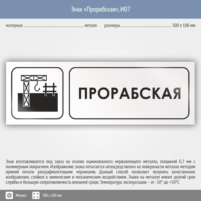 Знак «Прорабская», И07 (металл, 300х100 мм)