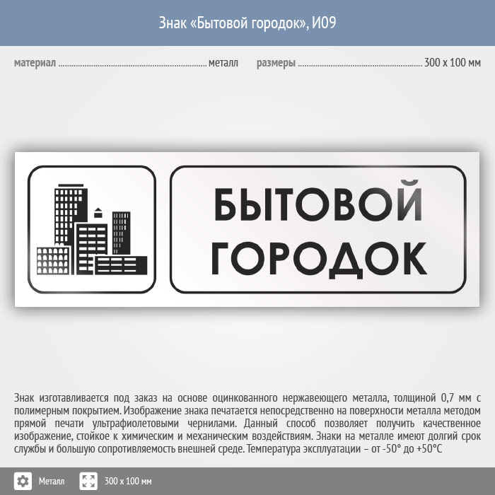 Знак «Бытовой городок», И09 (металл, 300х100 мм)