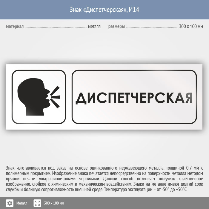 Знак «Диспетчерская», И14 (металл, 300х100 мм)