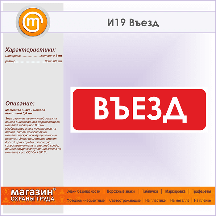 Знак «Въезд», И19 (металл, 900х300 мм)