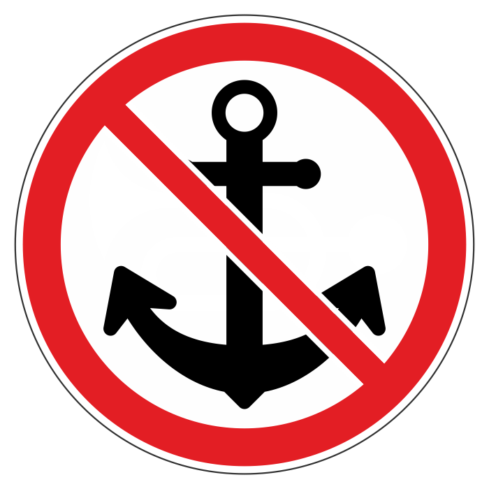 Знак «Якорь не бросать» предназначен для обозначения зоны подводного перехода, где запрещено отдавать якоря, опускать цепи, волокуши, лоты. Знаки устанавливают владельцы сооружений по согласованию с органами, регулирующими судоходство