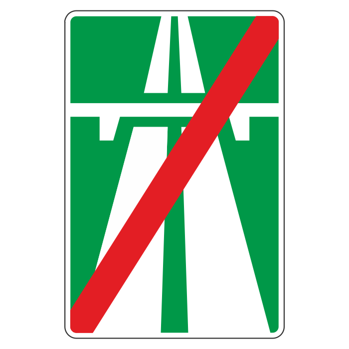 Данный знак отменяет действие знака 5.1. Дорожный знак 5.2 устанавливают в конце автомагистрали, в начале съездов с автомагистрали и предварительно с табличкой 8.1.1 на расстоянии 400 и 1000 м до конца автомагистрали