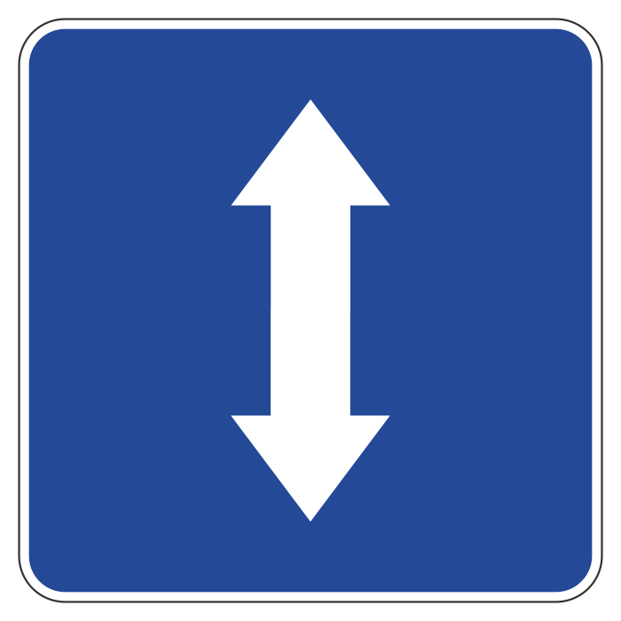 Знаком обозначается начало участка дороги, на котором на одной или нескольких полосах направление движения может изменяться на противоположное. Дорожный знак 5.8 устанавливают в начале дороги или участка с реверсивным движением. Повторный знак 5.8 устанавливают после каждого регулируемого перекрестка, а также после нерегулируемого перекрестка со сложной планировкой