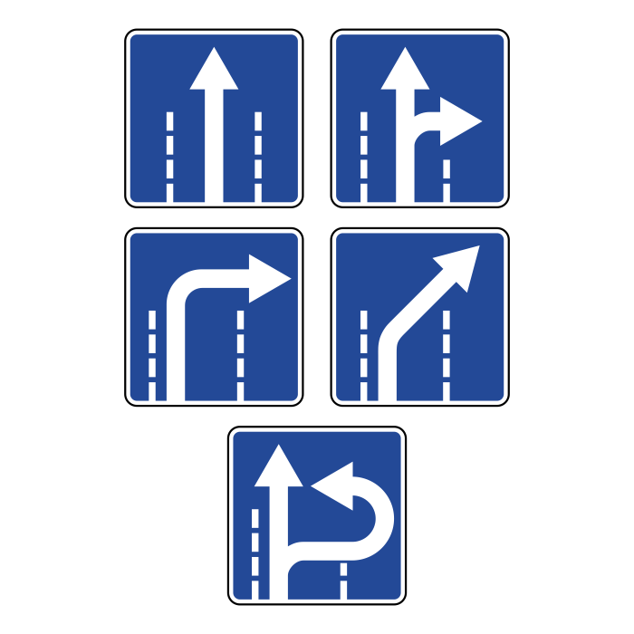 Знаком обозначается число полос и разрешенные направления движения на каждой из них. Дорожный знак 5.15.2 применяют для указания разрешенных направлений движения по каждой из полос на перекрестке, где требуется обеспечить использование полос в соответствии с интенсивностью движения транспортных средств по различным направлениям. Знаки устанавливают над проезжей частью на таком расстоянии от перекрестка, чтобы водители имели возможность своевременно осуществить необходимые перестроения