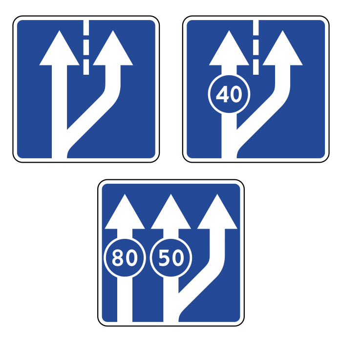 Дорожный знак 5.15.3 применяют для обозначения начала дополнительной полосы на подъеме или полосы торможения на пересечениях и примыканиях, при увеличении числа полос для движения в данном направлении и устанавливают у начала отгона такой полосы