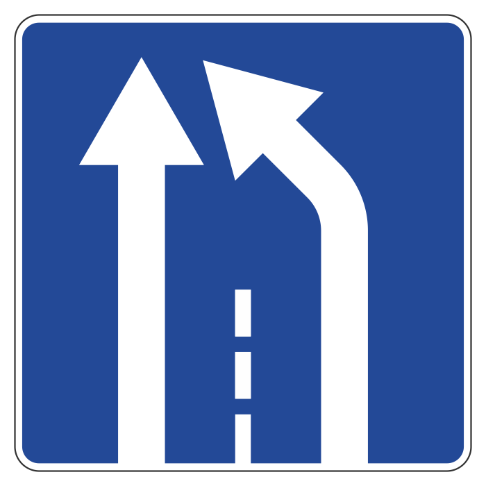 Дорожный знак 5.15.5 применяют для обозначения конца дополнительной полосы на подъеме или полосы разгона, при уменьшении числа полос для движения в данном направлении и устанавливают у начала отгона полосы