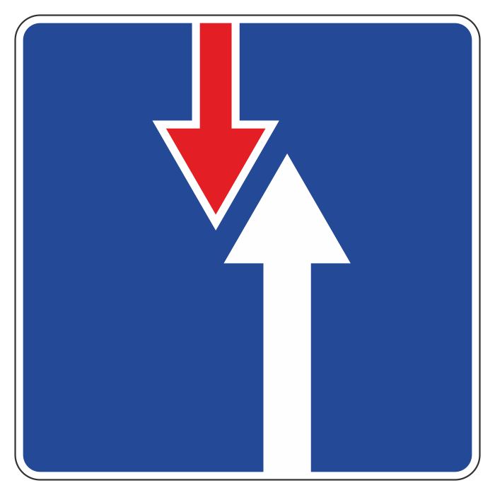 Дорожный знак 2.7 устанавливают непосредственно перед узким участком дороги с его противоположных концов. Водитель имеет право проехать узкий участок дороги первым
