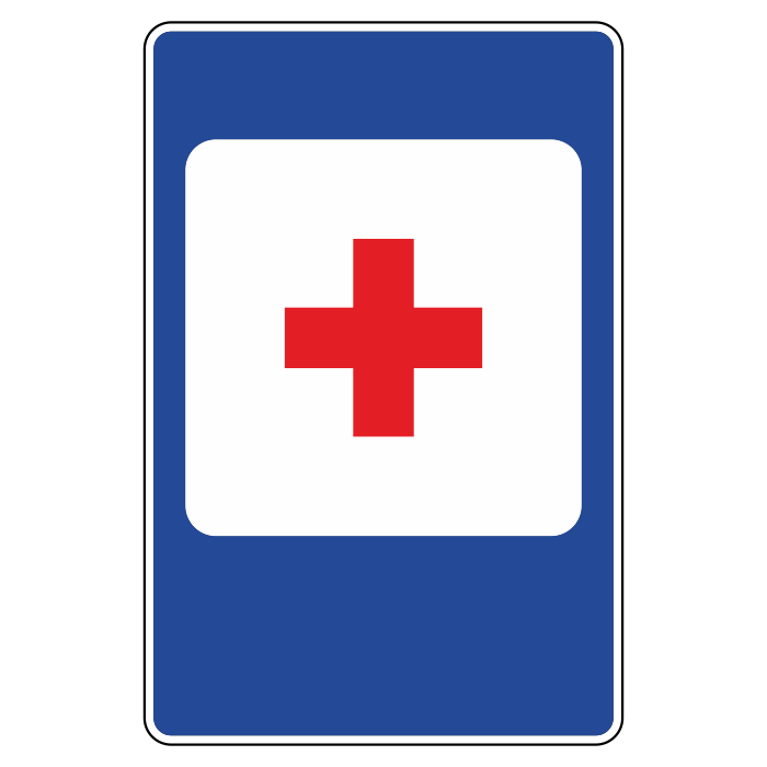 Знак указывает место, где находится Пункт первой медицинской помощи. Дорожный знак 7.1 устанавливают у объекта