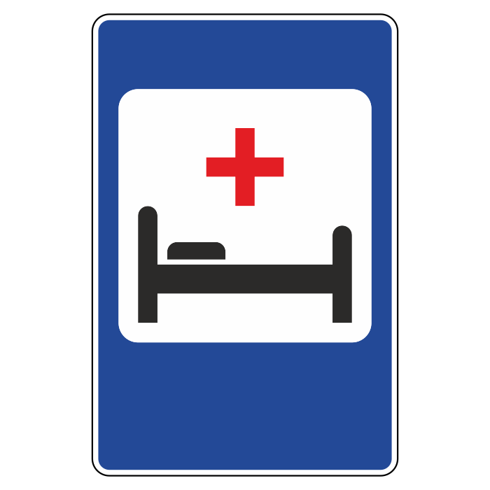 Знак указывает место, где находится Больница. Дорожный знак 7.2 устанавливают у объекта