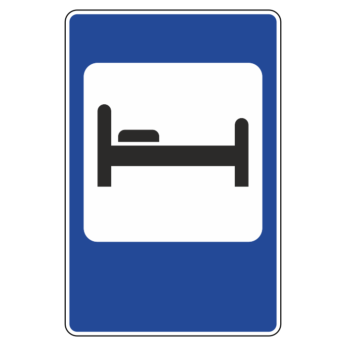 Знак указывает место, где находится Гостиница или мотель. Дорожный знак 7.9 устанавливают у объекта