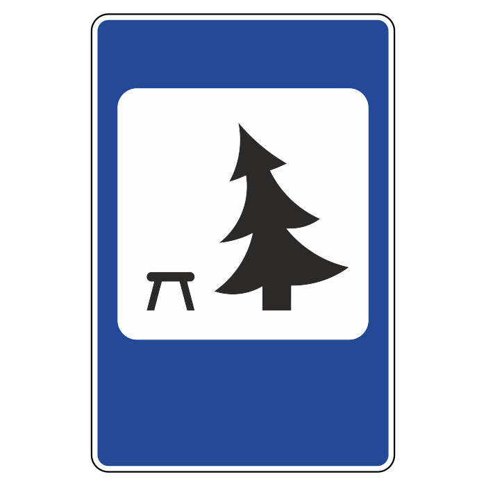 Знак указывает место, где находится Место отдыха. Дорожный знак 7.11 устанавливают у объекта
