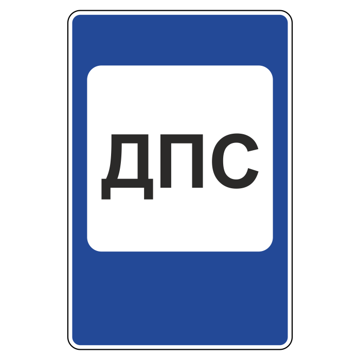 Знак указывает место, где находится Пост дорожно-патрульной службы. Дорожный знак 7.12 устанавливают у объекта
