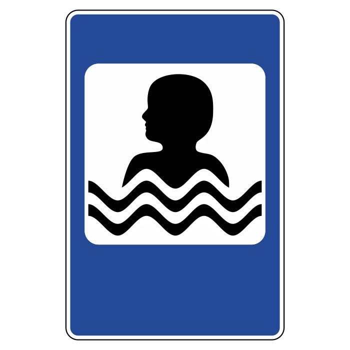 Знак указывает место, где находится Бассейн или пляж. Дорожный знак 7.17 устанавливают у объекта