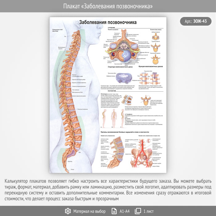 Плакат «Заболевания позвоночника» (ЗОЖ-43) в доступной форме раскрывает обозначенную тему