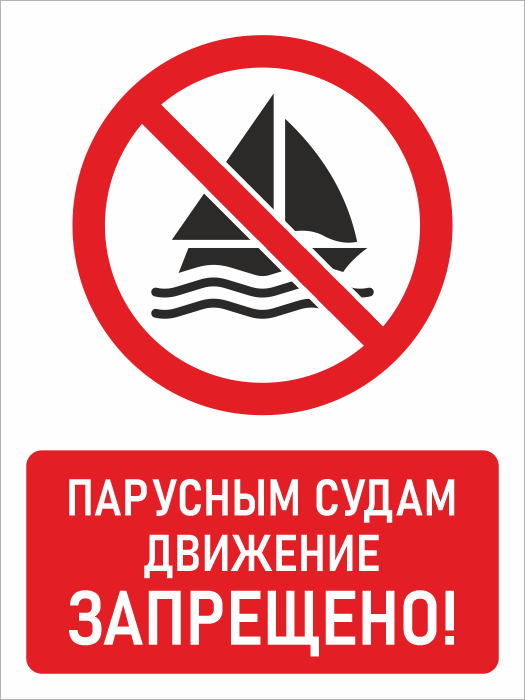 Знак «Парусным судам движение запрещено!», БВ-22 на 4-мм пластике, размером 400х600 мм как уже видно из названия, запрещает движение парусным судам