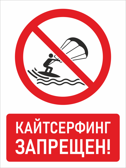 Знак «Кайтсерфинг запрещен!», БВ-23 на пленке, размером 400х600 мм как уже видно из названия, запрещает в месте установки кайтсерфинг