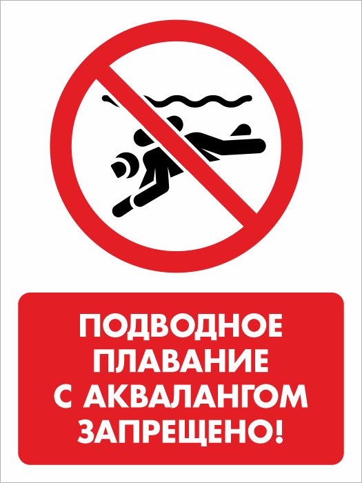 Знак «Подводное плавание с аквалангом запрещено!», БВ-38 на 4-мм пластике, размером 400х600 мм как уже видно из названия, запрещает плавание с аквалангом
