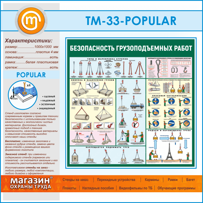 Стенд «Безопасность грузоподъемных работ» (TM-33-POPULAR)