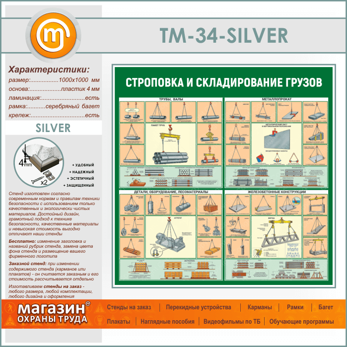 Стенд «Строповка и складирование грузов» (TM-34-SILVER)