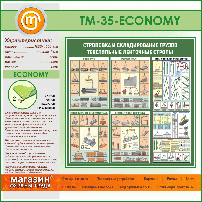 Стенд «Строповка и складирование грузов. Текстильные ленточные стропы» (TM-35-ECONOMY)