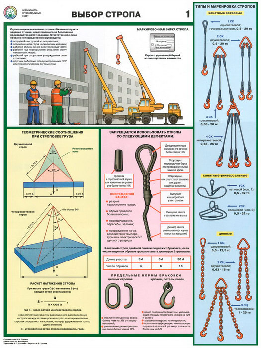 - Плакат «Выбор стропа» – типы и маркировка стропов, дефекты стропов, расчет строповки