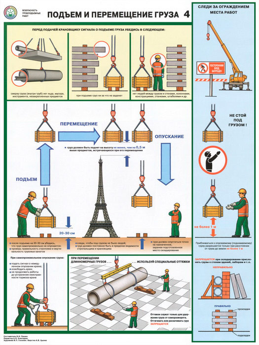 - Плакат «Подъем и перемещение грузов» – техника безопасности при подъеме, перемещении и опускании груза