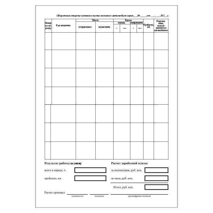 НОВЫЙ Путевой лист легкового автомобиля (Форма 3) (Приказ Минтранса России от 28.09.2022 № 390).