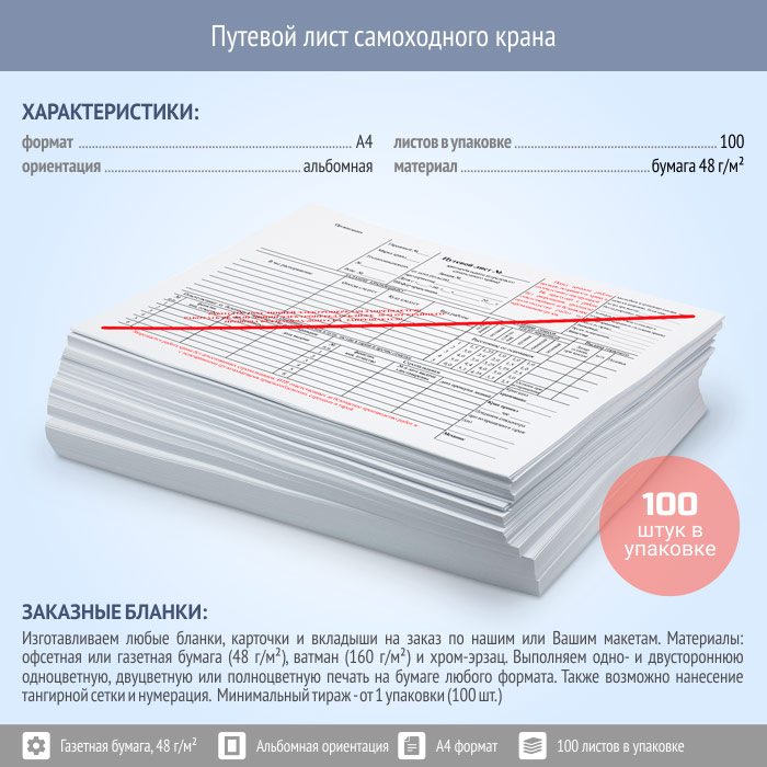 Путевой лист самоходного крана (упаковка из 100 штук)