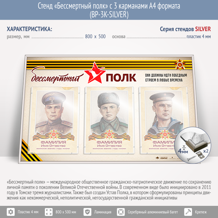 Стенд «Бессмертный полк» с 3 карманами А4 формата (BP-3K-SILVER)