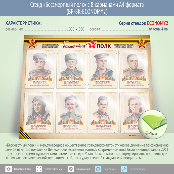 Стенд «Бессмертный полк» с 8 карманами А4 формата (BP-8K-ECONOMY2)