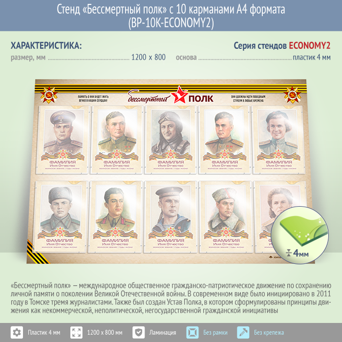 Стенд «Бессмертный полк» с 10 карманами А4 формата (BP-10K-ECONOMY2)
