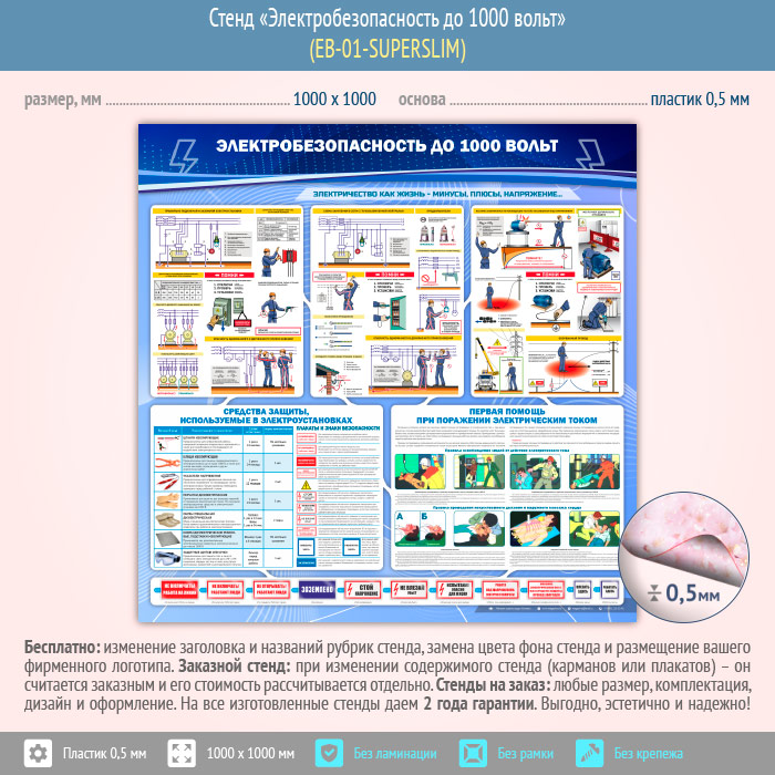 Стенд «Электробезопасность до 1000 вольт» (EB-01-SUPERSLIM)