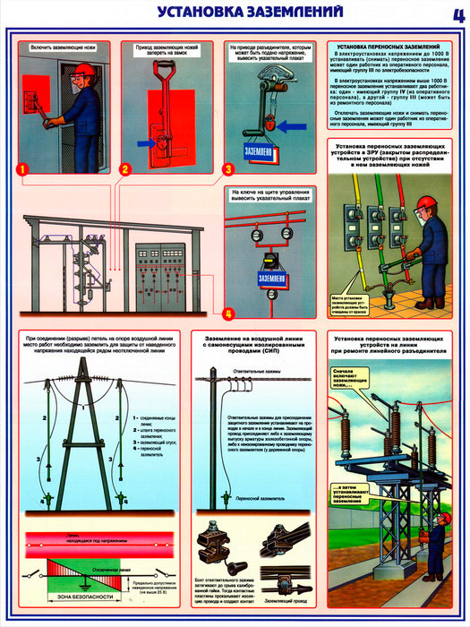 - Плакат «Установка заземлений» – порядок выполнения и правила техники безопасности