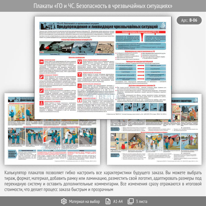 Плакаты «ГО и ЧС. Безопасность в чрезвычайных ситуациях» (В-06, 3 листа)