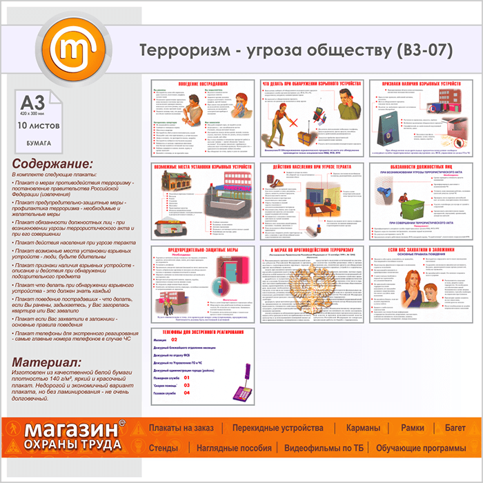 Плакаты «Терроризм - угроза обществу» (ВЗ-07, бумага, А3, 10 листов)
