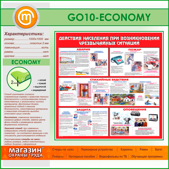 Стенд «Действия населения при возникновении чрезвычайных ситуаций» (GO-10-ECONOMY)