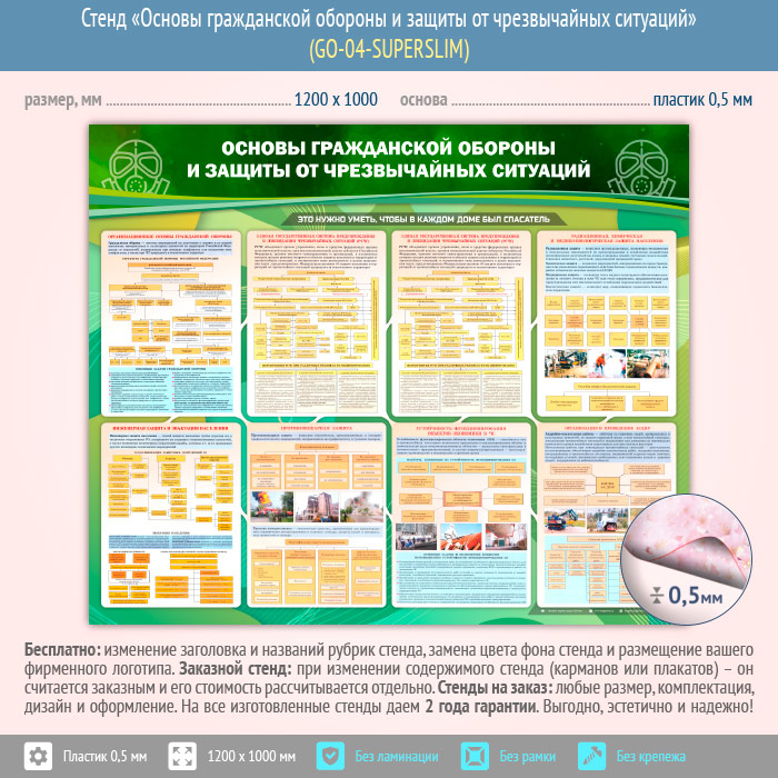 Стенд «Основы гражданской обороны и защиты от чрезвычайных ситуаций» (GO-04-SUPERSLIM)