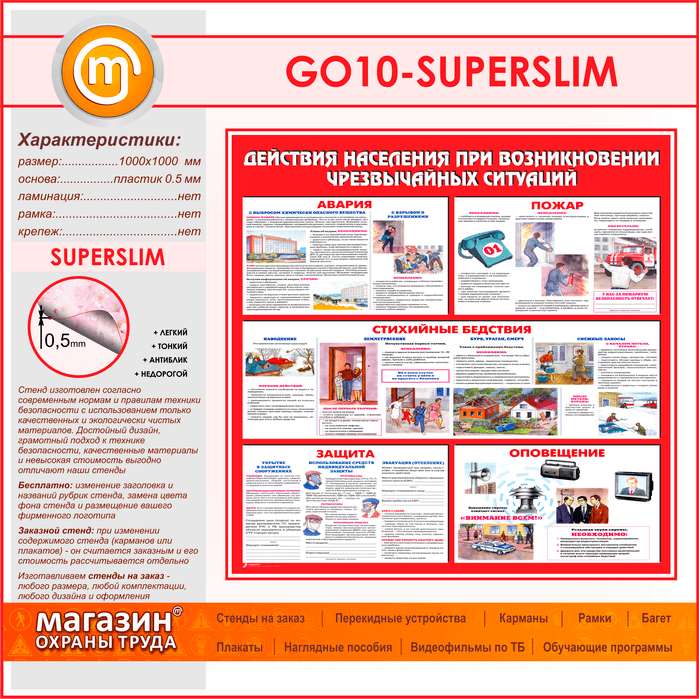 Стенд «Действия населения при возникновении чрезвычайных ситуаций» (GO-10-SUPERSLIM)
