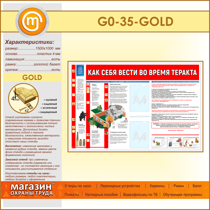 Стенд «Как себя вести во время теракта» c 2 карманами (GO-35-GOLD)