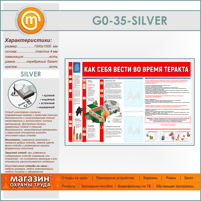 Стенд «Как себя вести во время теракта» c 2 карманами (GO-35-SILVER)