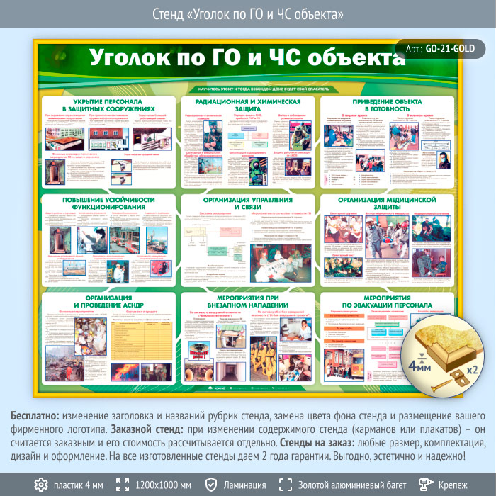 Стенд «Уголок по ГО и ЧС объекта» (GO-21-GOLD)