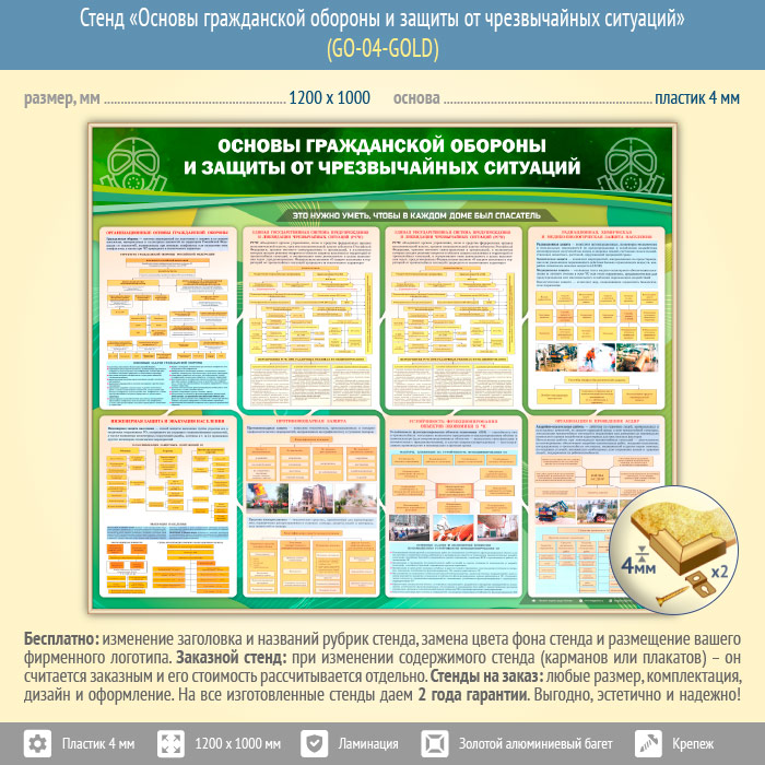 Стенд «Основы гражданской обороны и защиты от чрезвычайных ситуаций» (GO-04-GOLD)
