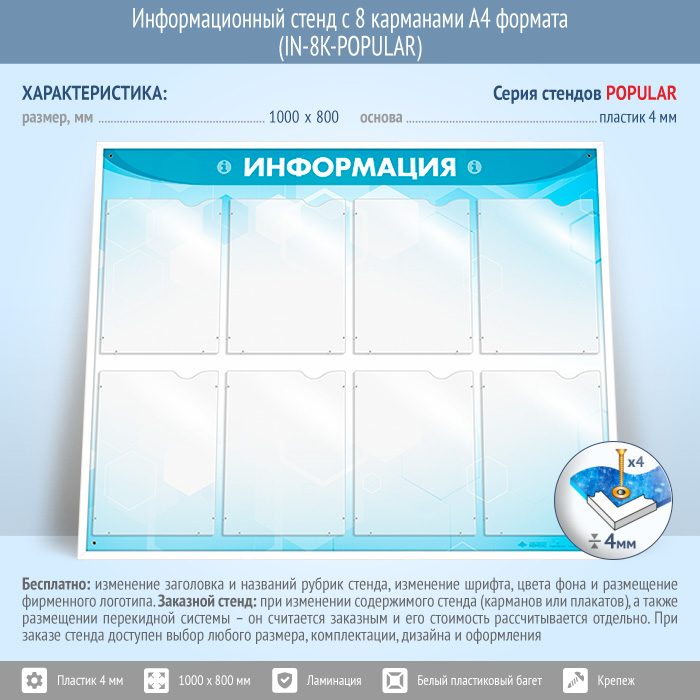 Информационный стенд с 8 карманами А4 формата (IN-8K-POPULAR)