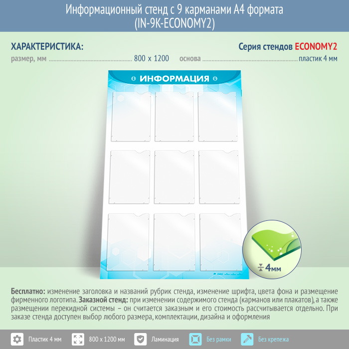 Информационный стенд с 9 карманами А4 формата (IN-9K-ECONOMY2)