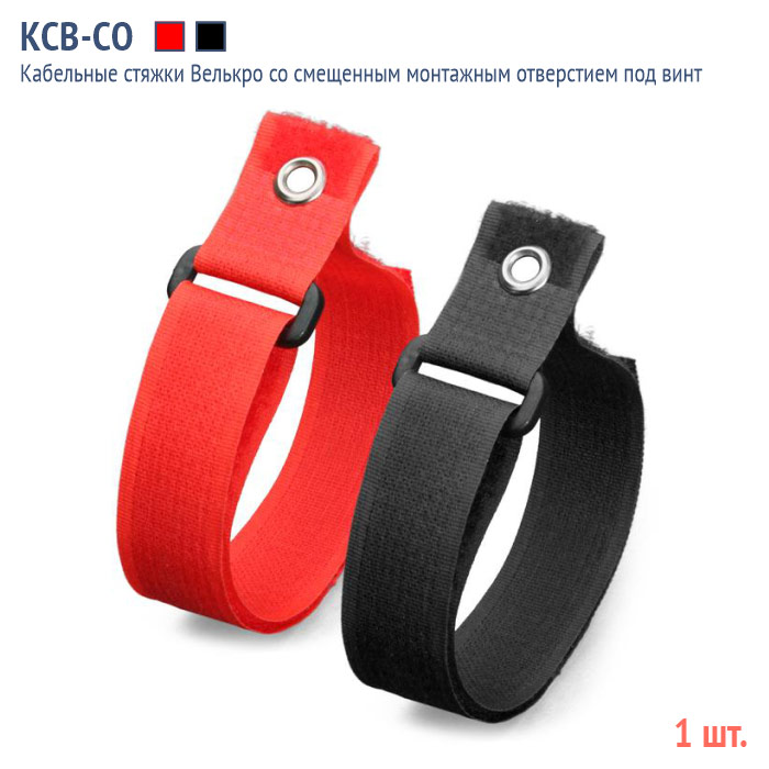 Кабельная стяжка Велькро со смещенным монтажным отверстием под винт - КСВ-СО 20х300 (ч) (1 шт.)