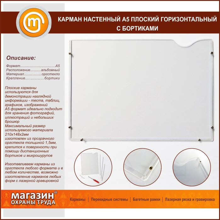 Плоские карманы используются для демонстрации наглядной информации – теста, таблиц, графиков, изображений