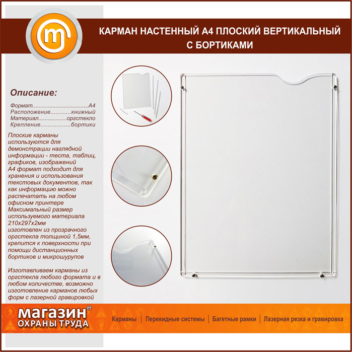 Изготавливаем карманы из оргстекла любого формата и в любом количестве, возможно изготовление карманов любых форм с лазерной гравировкой