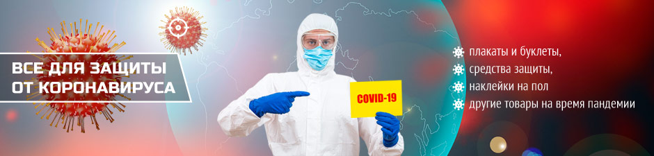 КОРОНАВИРУС: плакаты и буклеты, средства защиты, наклейки на пол и другие товары на время пандемии