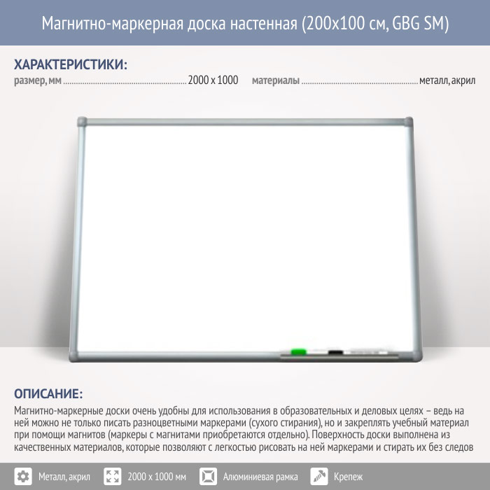 Магнитно-маркерная доска настенная (200x100 см, GBG SM)