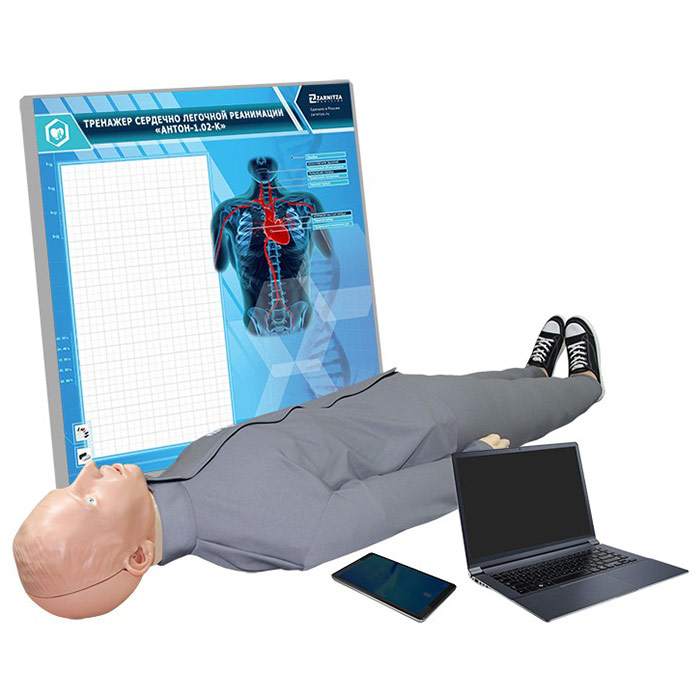 Полностью подвижная голова, шея, Подвижная челюсть, Контроль глубины компрессии, Контроль положения рук, Непрямой массаж сердца, Сердечно-легочная реанимация, Полнотелый манекен, Взрослый пострадавший, С контроллером, Подключается к компьютеру, Ноутбук в комплекте, Наличие набора ТРАВМ в комплекте, Сумка в комплекте, Коврик в комплекте